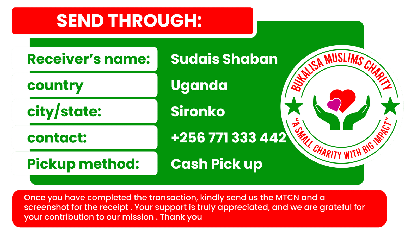 - Name of account: Bukalisa Muslim Foundation